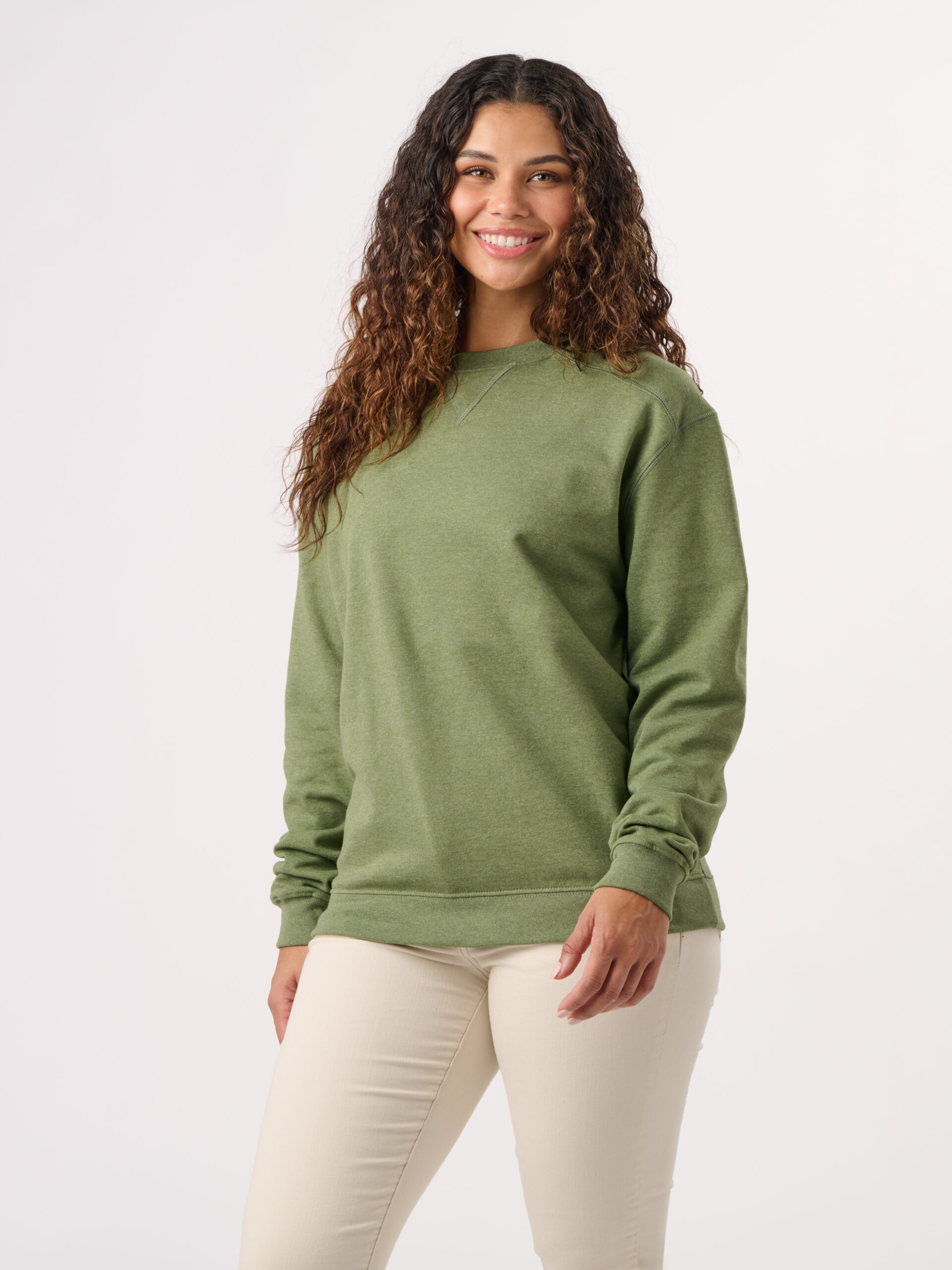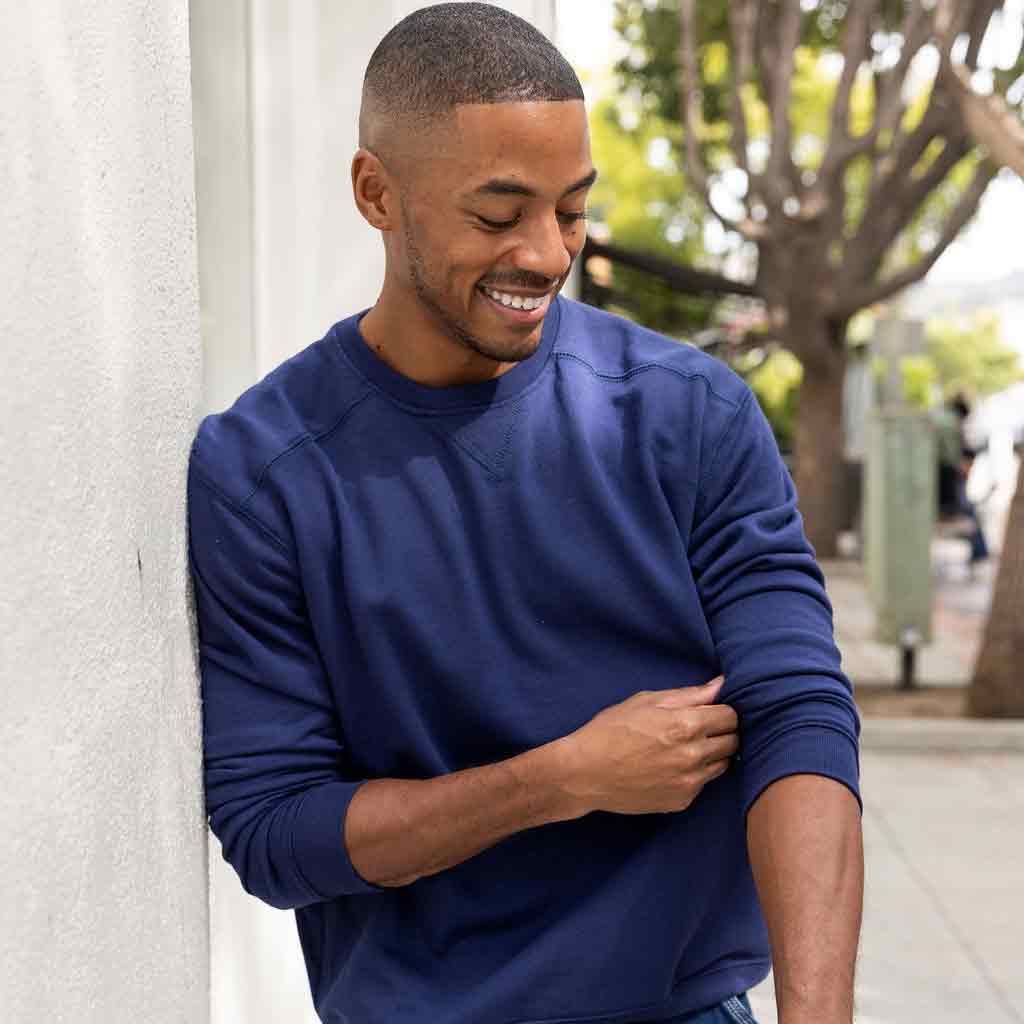 Featuring a relaxed fit with a brushed fleece lining, raglan sleeve, classic V stitching, and rib cuffs and waistband, this crewneck is sure to become your go-to comfort piece.