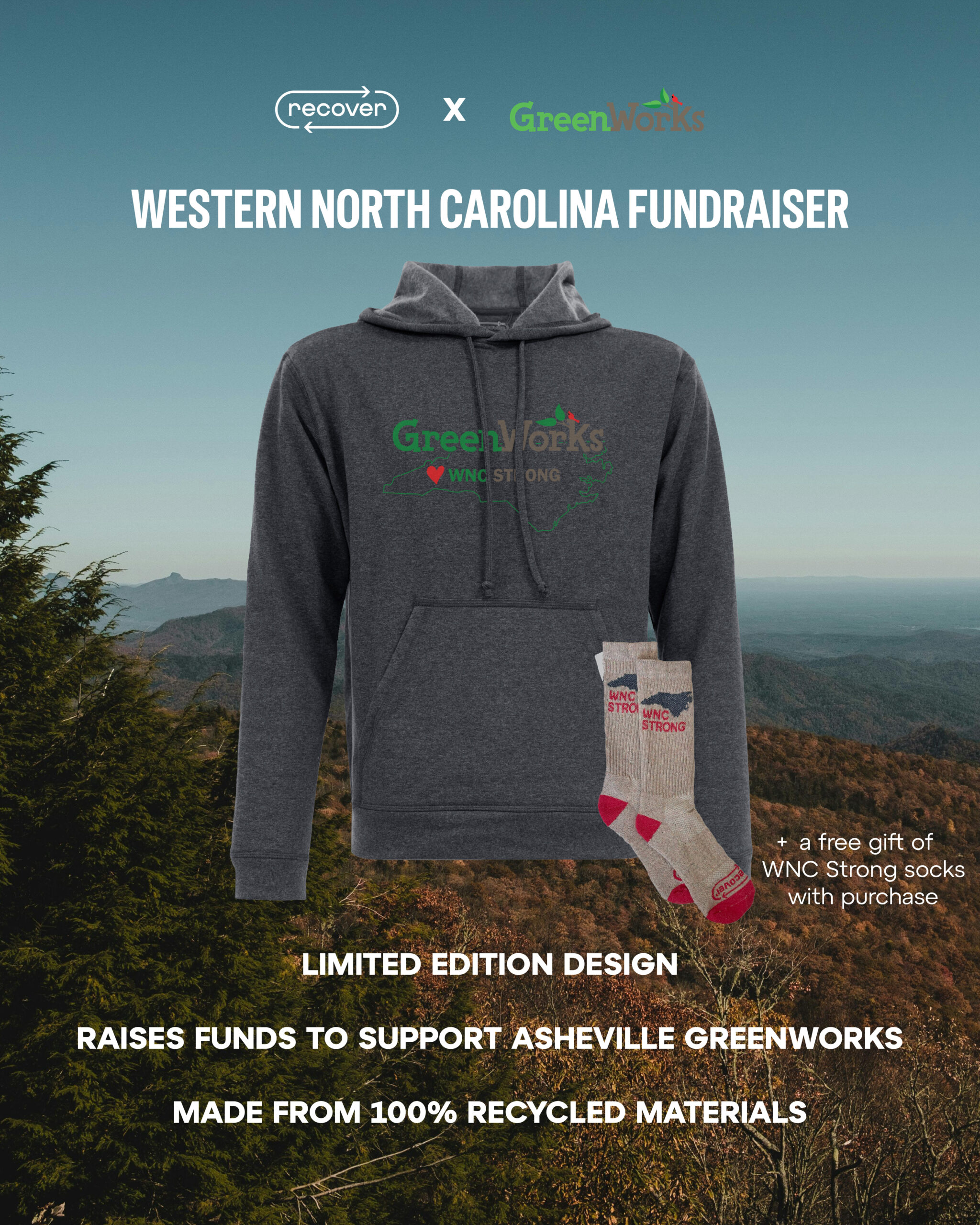 To continue to support the recovery of Western North Carolina, we’ve created apparel that raises funds for WNC businesses and non-profit organizations affected by Hurricane Helene. Each order also comes with a free pair of WNC Strong Socks!